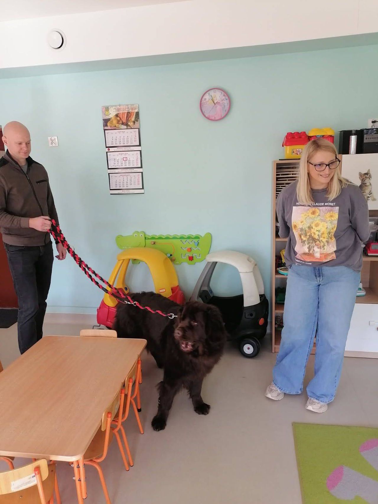 05.03.2026 r. odbyło się spotkanie z psem rasy Nowofundland o imieniu Bella, które zorganizowała i poprowadziła p. Katarzyna Świątkiewicz wraz z p. Arkadiuszem Świątkiewiczem. Celem tego spotkania było nauczenie dzieci bezpiecznego kontaktu z psami, poznanie podstawowych zasad opiekowania się nimi, rozwijanie empatii w stosunku do zwierząt oraz uzmysłowienie dzieciom, jak bardzo odpowiedzialnym zajęciem jest posiadanie pieska.