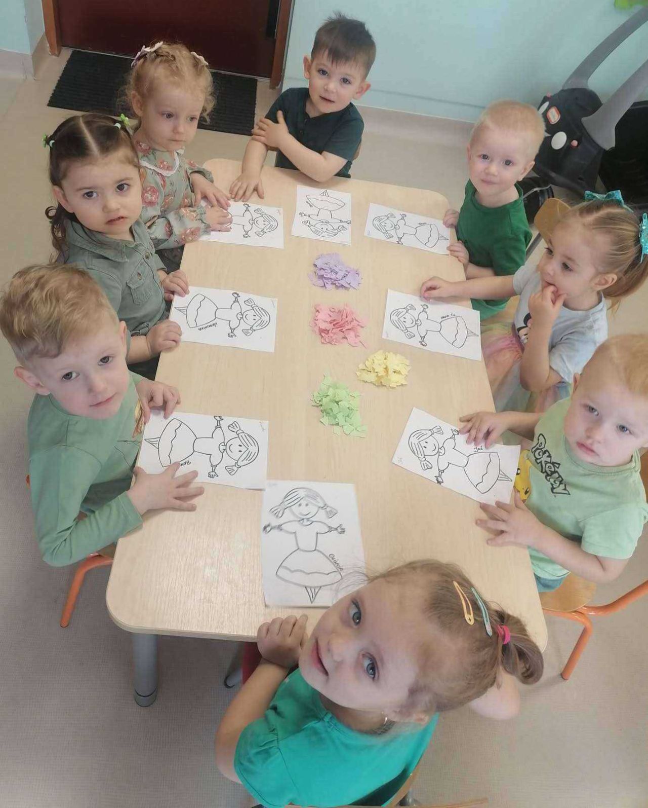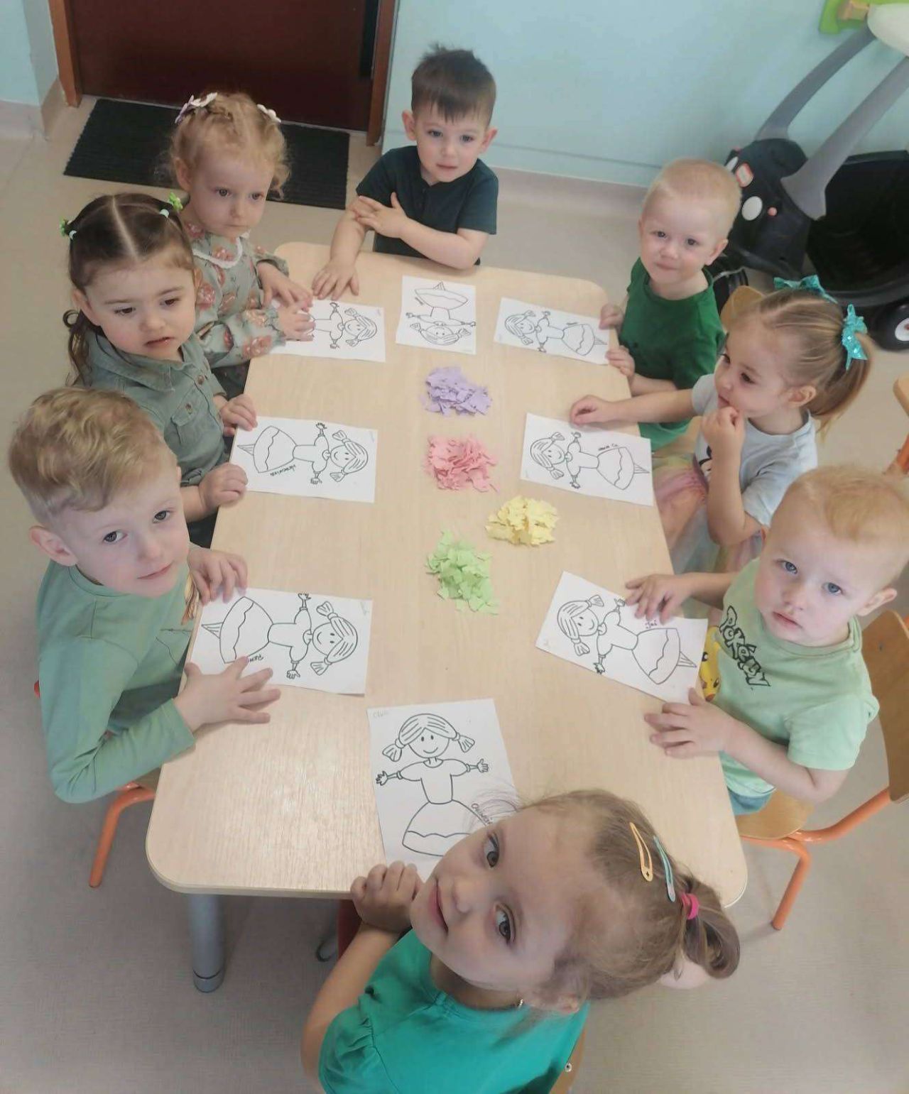20.03.2026 r. w naszej sali zazieleniło się od pięknych, zielonych strojów dzieci i Pań opiekunek. W radosnych rytmach witaliśmy Wiosnę. Były balony, bańki i wesołe zabawy taneczne. Następnie każdy wykonał Marzanne z kolorowej wydzieranki oraz włóczki. W Niedźwiadku zagościła już Wiosna.