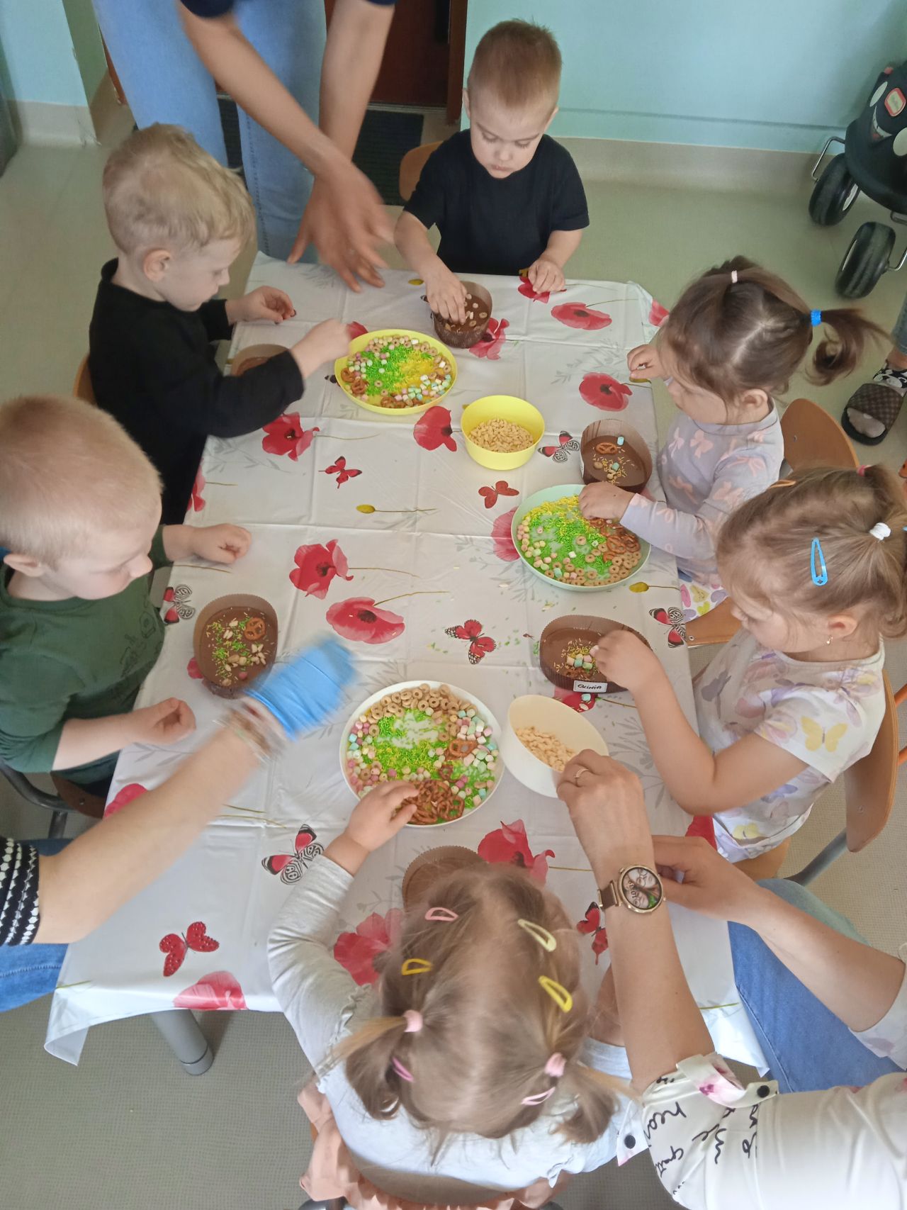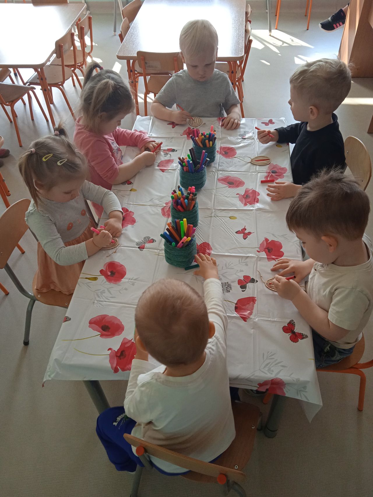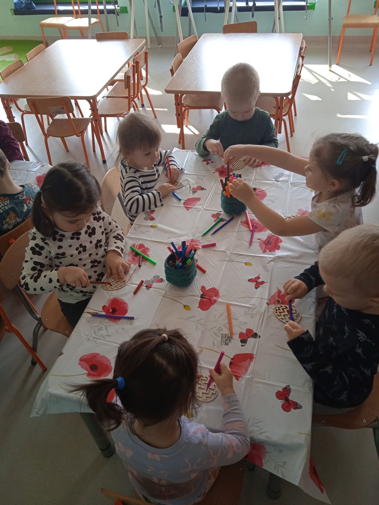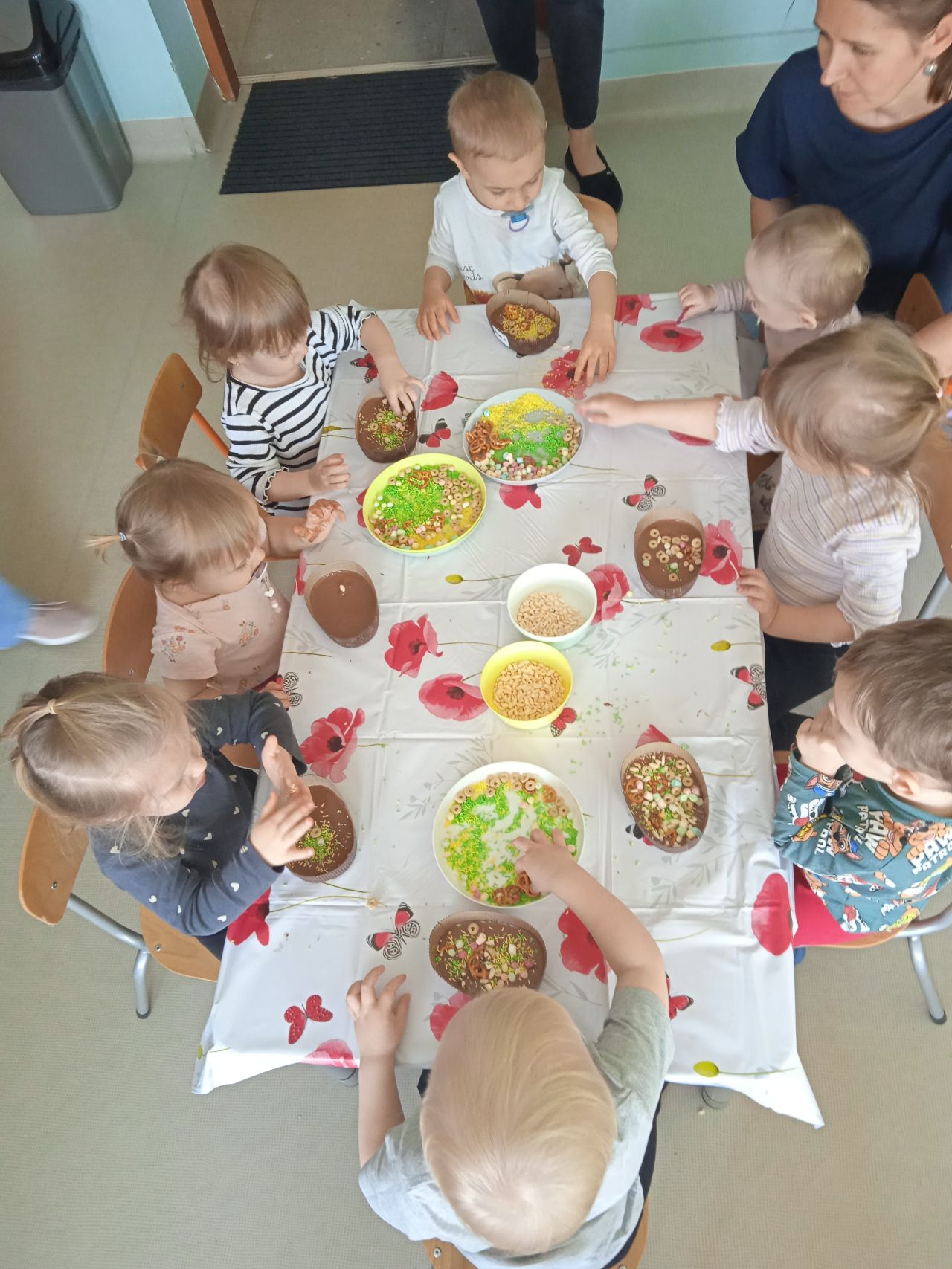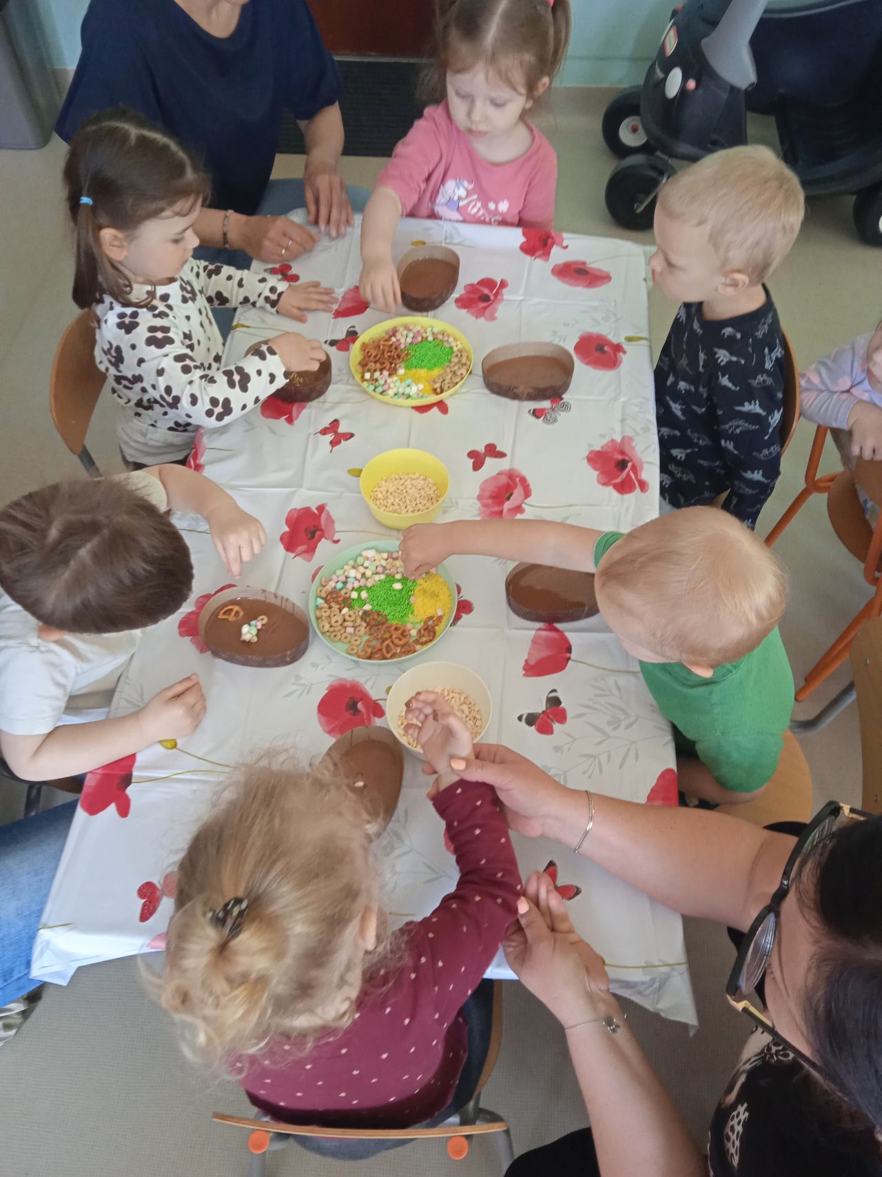 W poniedziałek, 30.03.2026 r. w Klubie Dziecięcym "Niedźwiadek" odbyły się warsztaty czekoladowe, prowadzone przez Panie z Pracowni Inwencji Twórczej podczas, których dzieci wykonywały czekoladowe pisanki. Panie prowadzące zajęcia wypełniły foremki płynną czekoladą a następnie dzieci dekorowały czekoladowe pisanki kolorowymi posypkami i różnymi spożywczymi ozdobnikami. Dodatkowo Panie prowadzące warsztaty przygotowały dla dzieci dodatkową niespodziankę w postaci drewnianych pisanek, które dzieci kolorowały mazakami. Serdecznie dziękujemy Paniom z Pracowni Inwencji Twórczej za wspaniale przygotowane zajęcia oraz wprowadzenie nas w świąteczny nastrój.