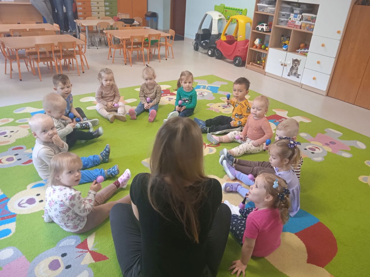 15.10.2025 r. w naszym klubiku odbyły się pierwsze zajęcia z rytmiki prowadzone przez Panią Martę Bełdowską. Rytmika jest metodą wychowania muzycznego, która łączy w sobie elementy tańca, śpiewu, gry na instrumentach, improwizacji ruchowej. Wspiera ona ogólny rozwój fizyczny dziecka, ale także uwrażliwia na muzykę, rozwija poczucie rytmu oraz koordynację ruchową.